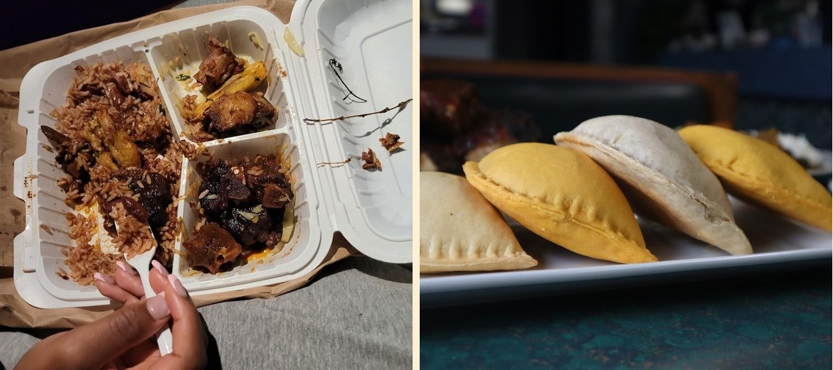 Definitely try the jerk chicken and jerk pork. Both dishes are cooked on an open fire pit. The flavors are genuine and unforgettable.